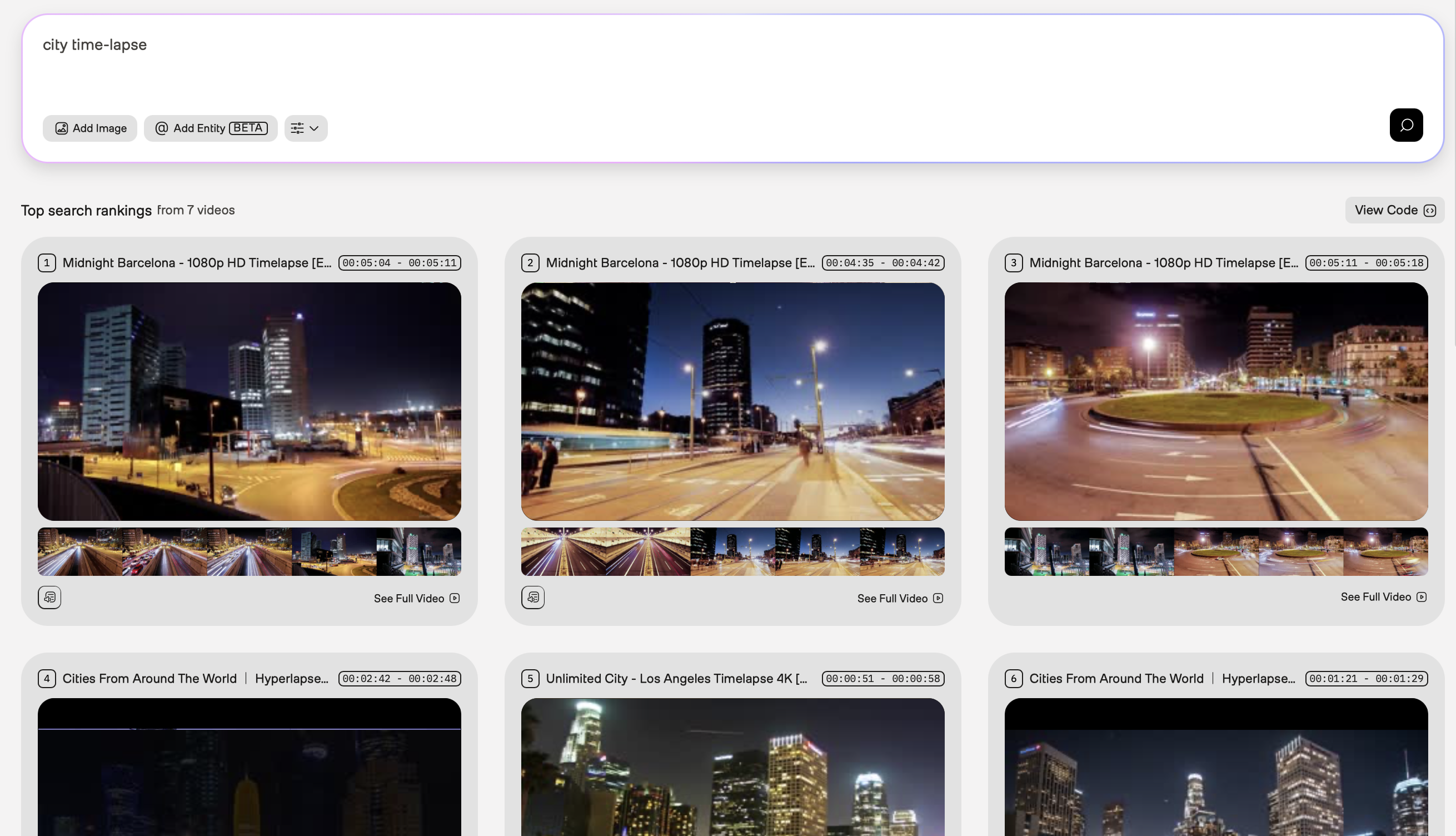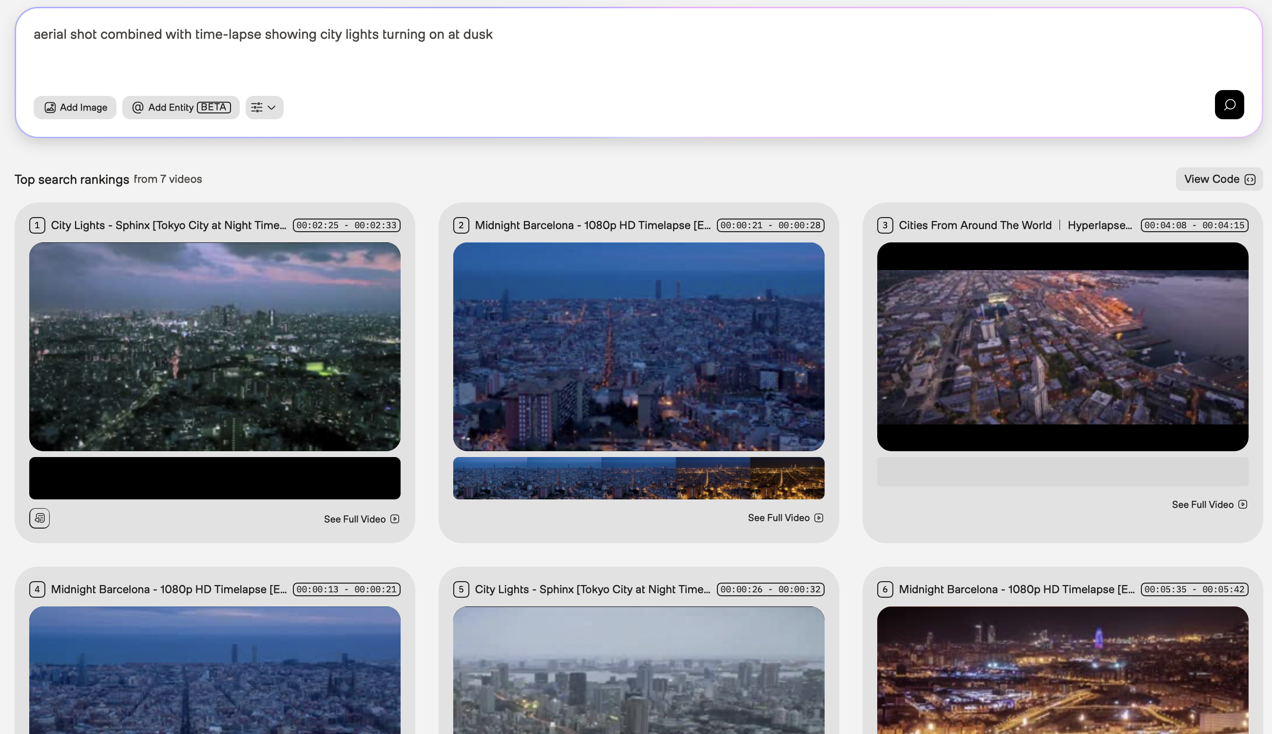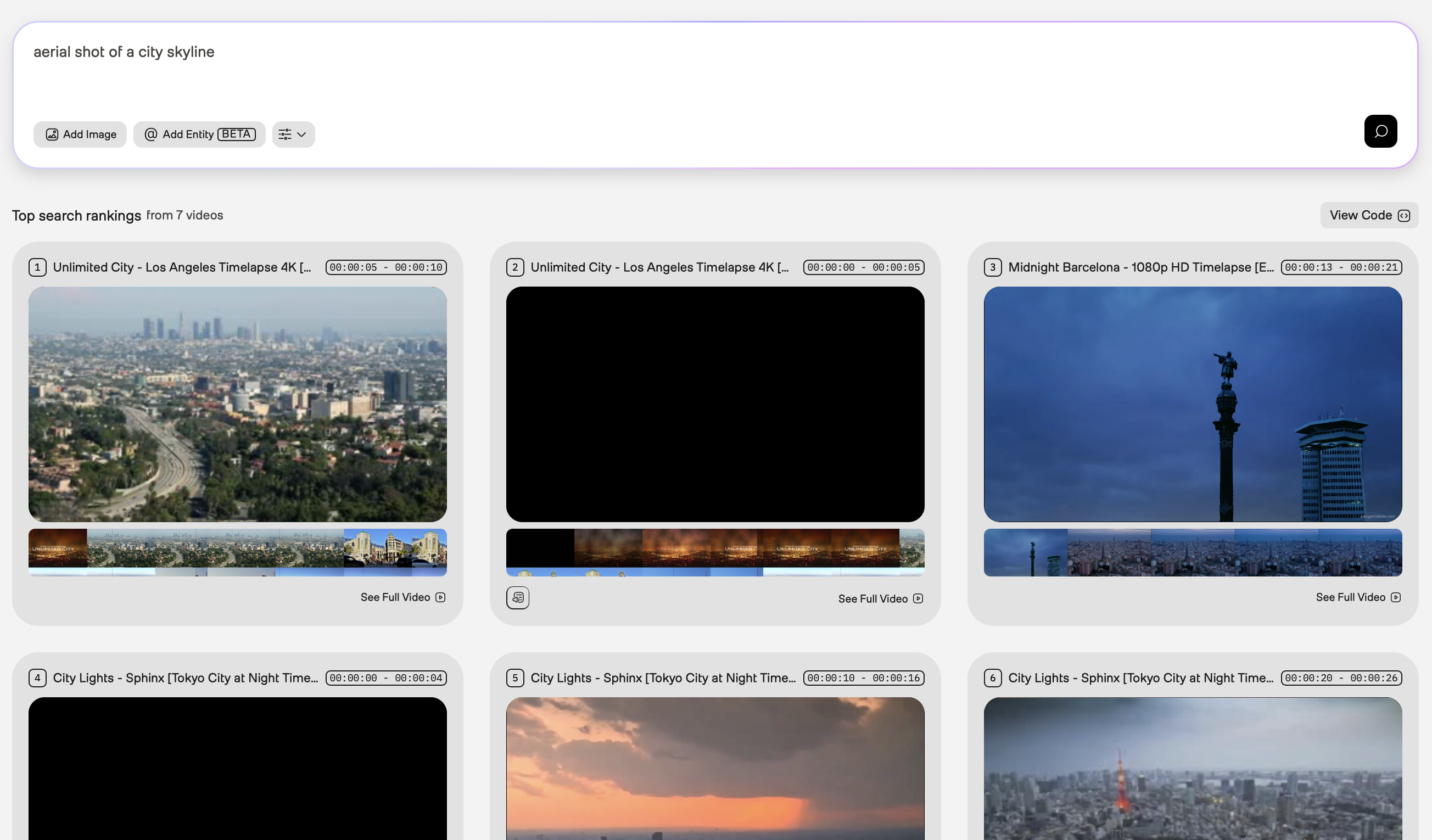 Initial query: Use “city time-lapse” as your initial query. The results might include various types of city footage: